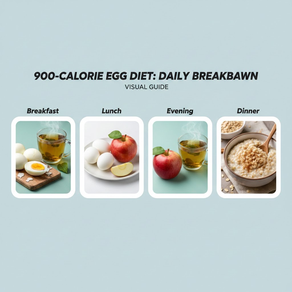 Before deciding whether the 900-calorie egg diet fits your needs, it helps to understand how the plan is structured. Many versions online share a similar format built around boiled eggs, fruit, and tea. The daily menu is repetitive and follows a predictable calorie pattern, which is part of its appeal for people who prefer simple rules.