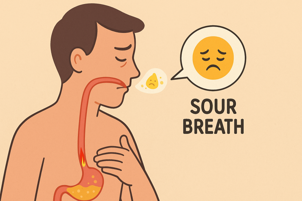 Lying flat after big or spicy meals, eating late at night, or drinking a lot of coffee, soda, or alcohol can make reflux worse. Over time, repeated reflux may irritate your throat and teeth and may increase the risk of complications, which is why persistent sour breath deserves a mention at your next appointment.