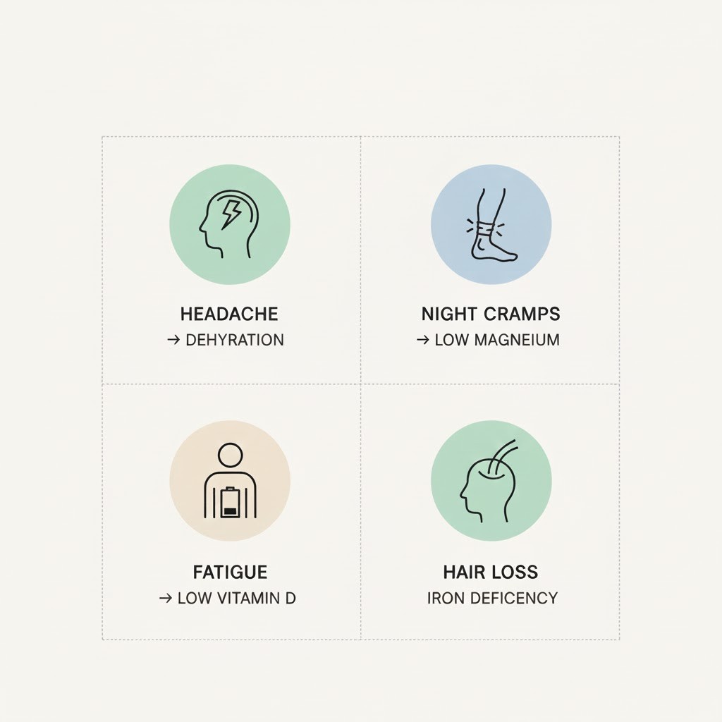 Not always. While many common symptoms—like fatigue or muscle cramps—can be tied to hydration or nutrient gaps, other factors such as stress, sleep changes, medication, or underlying medical conditions may also play a role. If symptoms persist, it’s wise to seek professional guidance to identify the root cause accurately.