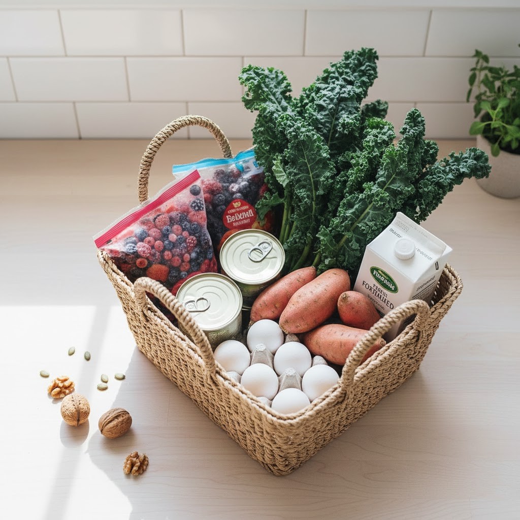Batch-cooking on Sundays can save hours during the week. Roast a tray of sweet potatoes (400°F for about 30 minutes), chop leafy greens, and prep bags of frozen fruit for smoothies. Keep ready-to-eat snacks like nuts, Greek yogurt, and sliced peppers available so you’re never scrambling. Spending just 45 minutes prepping can set you up for a full week of vitamin-rich meals.